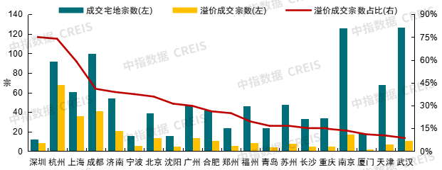 随着核心城市优质地块供应力度减弱,300城住宅用地平均溢价率“前高后低”特征明显。具体来看,2022年底重点城市取消土地限价后,300城宅地溢价率基本在6%左右,但分化现象持续,核心城市多竞拍出高溢价,其余城市普遍底价成交。2025年初,受上年末新房市场回暖带动,北上深杭蓉等核心城市率先升温,多宗地块高溢价成交,带动一季度300城宅地溢价率升至13.4%。进入二季度,尤其是5月以后,优质地块供应节奏放缓、企业投资回归理性,市场热度回落,平均溢价率降至7.5%。三季度以来投资谨慎情绪延续,整体溢价率下滑至5.7%,12月溢价率进一步降至2.1%。