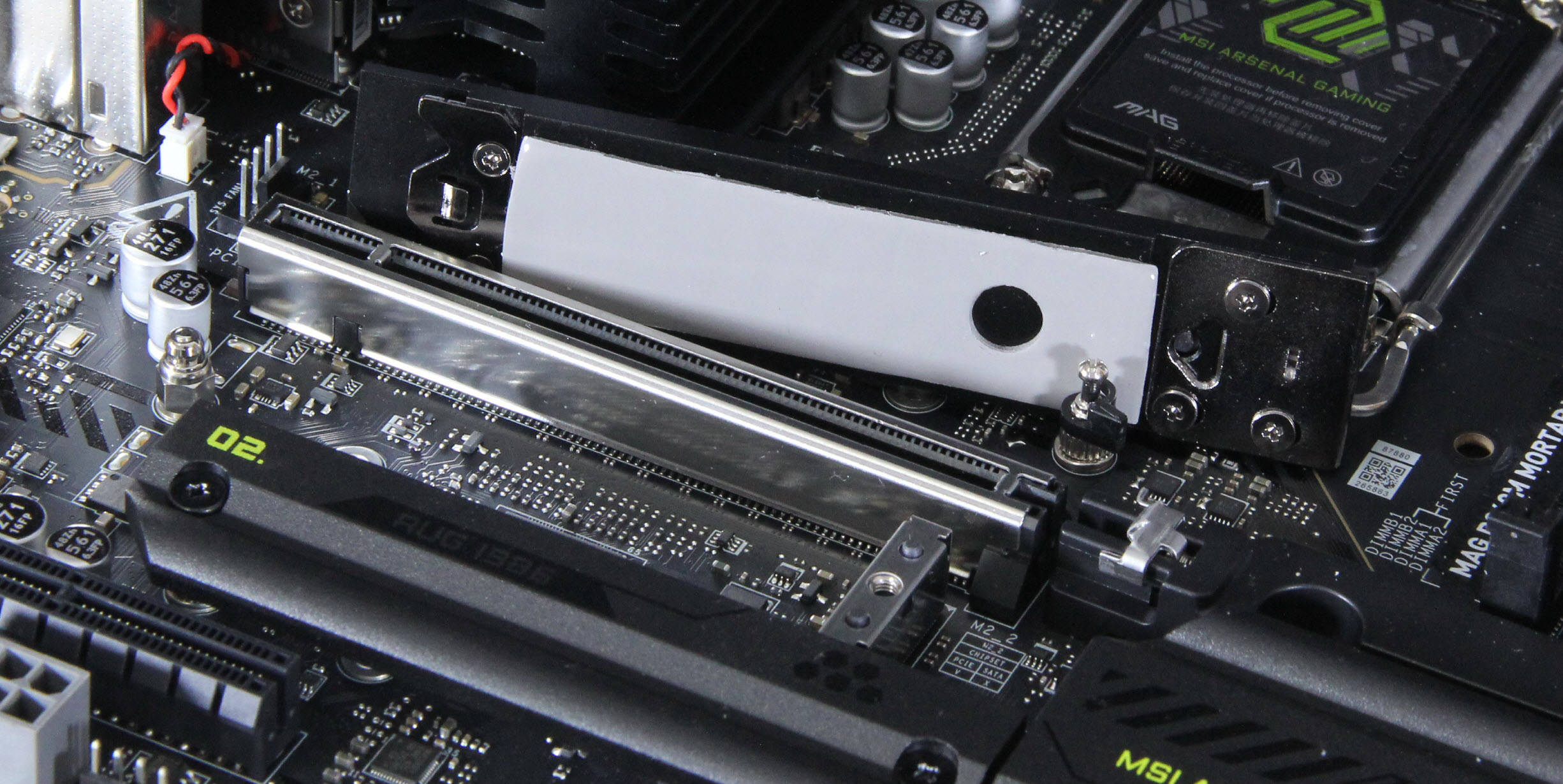 PCIe扩展方面,微星MAG B860M MORTAR WIFI主板搭载了1条满血PCIe 5.0 x16插槽(直连CPU,带宽高达128GB/s)和1条PCIe 4.0 x4插槽,其中PCIe 5.0插槽包裹金属外壳,可增强插槽强度,避免显卡过重导致的形变。主板还配备了显卡快拆设计:插槽内置弹簧结构,轻轻按压即可锁止或解锁卡扣,无需手动掰开,极大简化显卡拆装流程,尤其适合频繁升级硬件的用户。这一设计在同类主板中极为罕见,大大提升了装机和升级的便捷性。