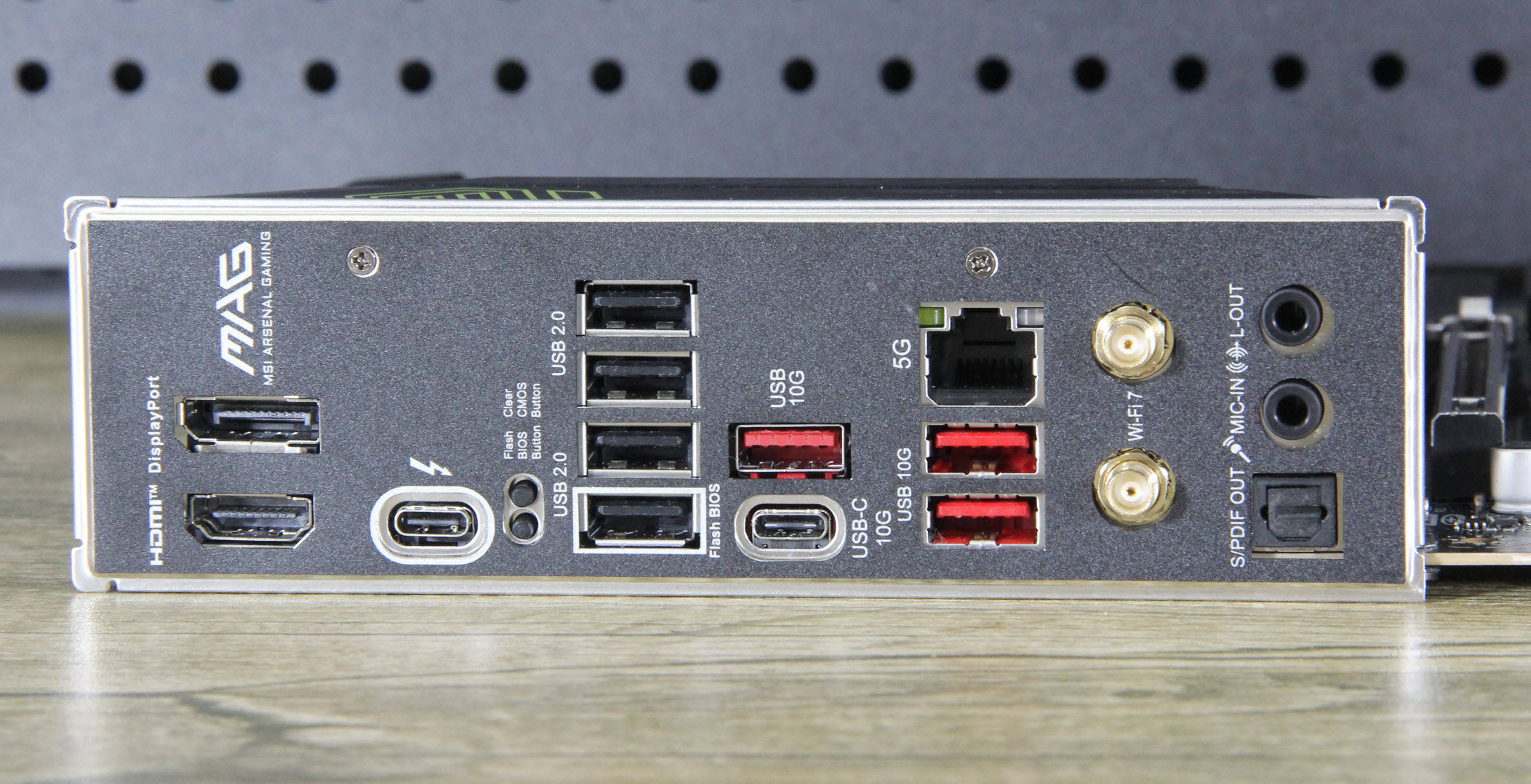 网络连接方面,微星MAG B860M MORTAR WIFI主板配备了旗舰级的网络配置。采用Intel Killer全家桶方案——BE1750x WiFi 7无线-QAM调制技术)和E5000 5Gbps有线网卡。这样的网络配置无论是在线游戏还是大文件传输,都能避免网络瓶颈,提供低延迟、高稳定性的连接体验。同时,主板还配备了雷电4接口(支持40Gbps传输速度),这对于需要连接高速外设或扩展坞的用户来说是一个巨大的便利。